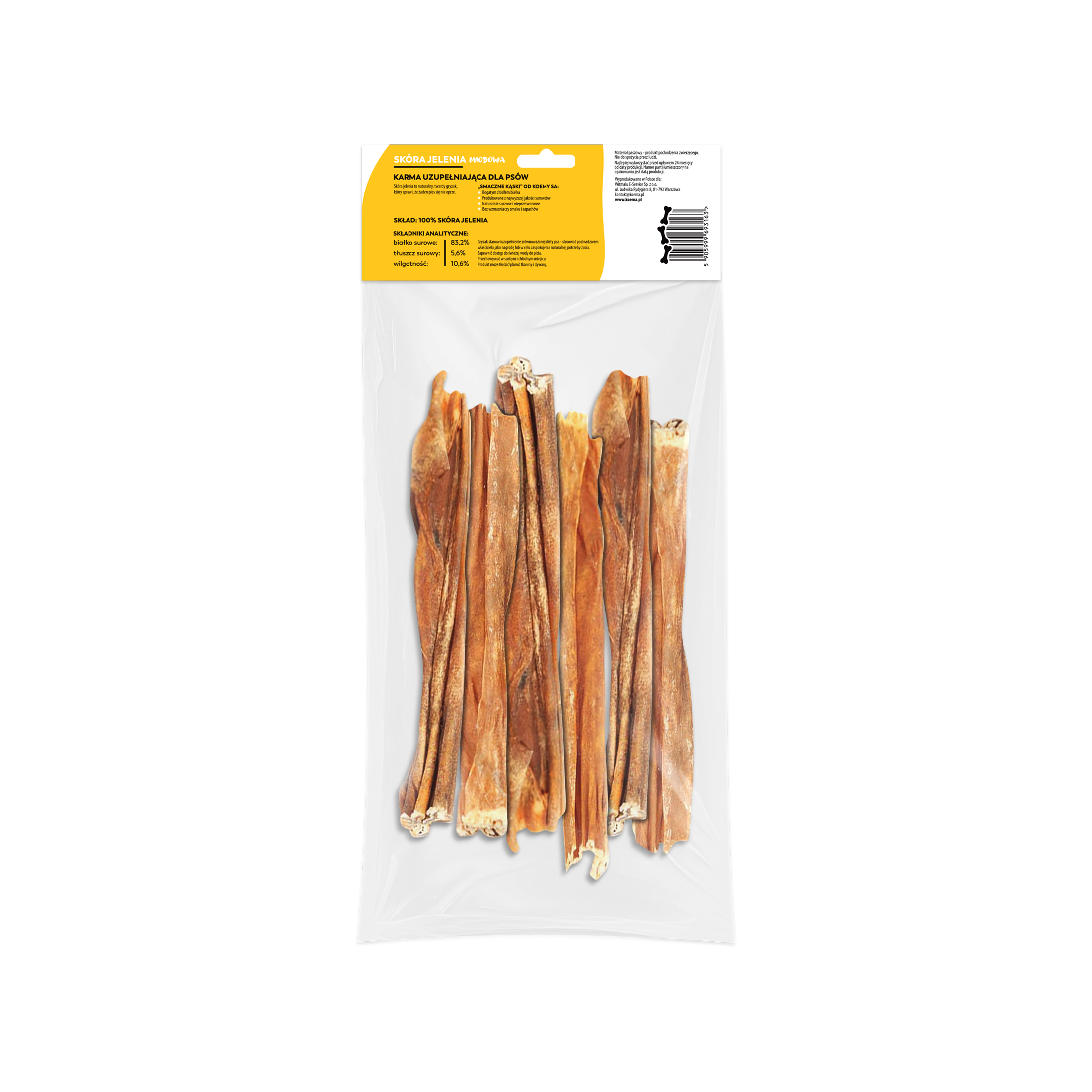 Home przysmaki dla psa Koema Skóra jelenia miodowa 100g